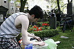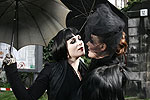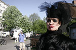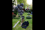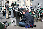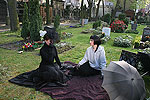 Today is a sunny day and it is simply marvelous outside. At 9 o’ clock sharp we were opposite the Uban KleistPark where we started shooting. For the first time I saw the main star of movie, a beautiful zombie, and along with me everyone who was going about their business on this busy street saw him as well. Little children, grannies and a multitude of people, knowing it was a movie shoot were staring at this zombie in the middle of the city walking about its streets. Pictures of Otto with the passerbys you can see by clicking here. After a 2hour lunch break at the offices we found ourselves at a very “rich”-it seemed to me- graveyard with fancy gravestones and someone living near there on his balcony playing his music way too loud which delayed shooting until he turned it off. We had all met the previous day but during the shooting we got to know each other much better and this is the way that I’m going to be introducing them to you. Just click on the photographs so you can see them larger and to read from which scene is each.