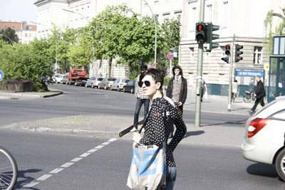 Nina Kharytonova (Production Assistant), she had also to play the "extra" in the public road scene at the Kleistpark while she really wanted badly to pee and she couldnt find any free scecond.